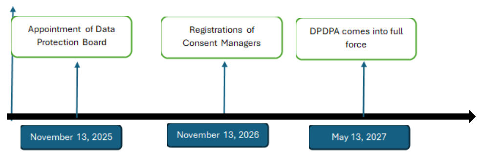 The implementation of DPDPA will take place in a staggered approach that extends to 18 months. This phased rollout is designed to give businesses significant time and breathing room to adjust their internal systems, IT policies, and establish enforcement mechanisms.